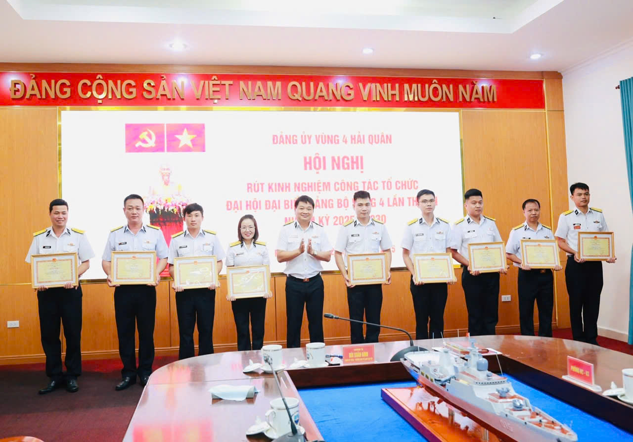 Nhân dịp này, Bộ Tư lệnh Vùng 4 khen thưởng 2 tập thể và 13 cá nhân đã có thành tích tốt trong tham gia, phục vụ Đại hội đại biểu Đảng bộ Vùng 4 Hải quân lần thứ XII, nhiệm kỳ 2025-2030.