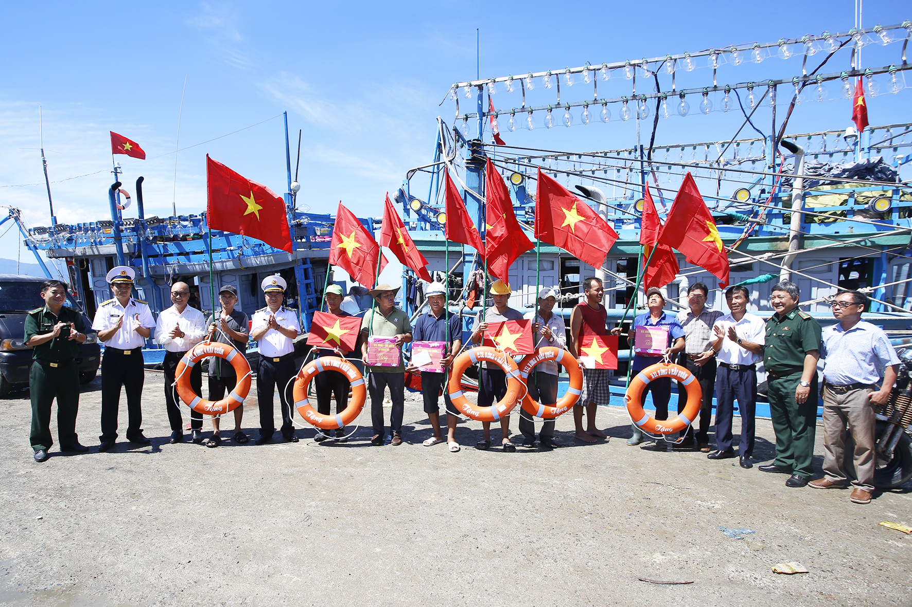 Đoàn công tác của Bộ Tư lệnh Vùng 4 cũng đã trao tặng 100 chiếc phao tròn, 450 lá cờ Tổ quốc và phát 300 bộ tài liệu về nội dung “Một số điều cần biết dành cho ngư dân” cho ngư dân địa phương. Tổng giá trị quà tặng gần 100 triệu đồng.