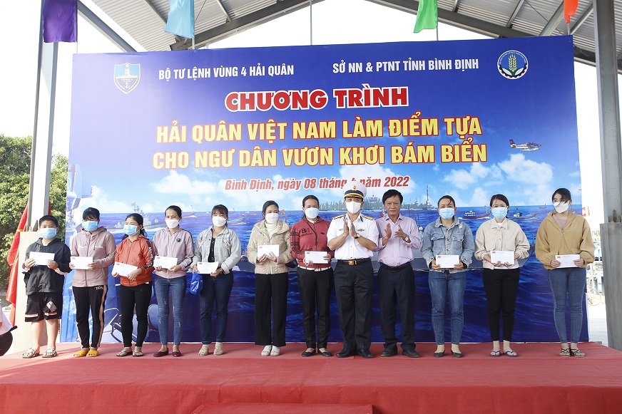 Thực hiện Chương trình “Hải quân Việt Nam làm điểm tựa cho ngư dân vươn khơi, bám biển”, Vùng 4 đã tổ chức tốt các hoạt động bằng những việc làm cụ thể giúp đỡ bà con ngư dân như: Khám chữa, bệnh cho bà con ngư dân ở các cảng cá; phối hợp với lực lượng chức năng tuyên truyền pháp luật, hỗ trợ các phương tiện cứu sinh, tặng cờ Tổ quốc cho các tàu cá; tặng các phần quà cho các gia đình ngư dân, các em học sinh có hoàn cảnh khó khăn. Những việc làm thiết thực thể hiện tình cảm trách nhiệm, của Hải quân nhân dân Việt Nam nói chung, Vùng 4 Hải quân nói riêng đối với bà con ngư dân.