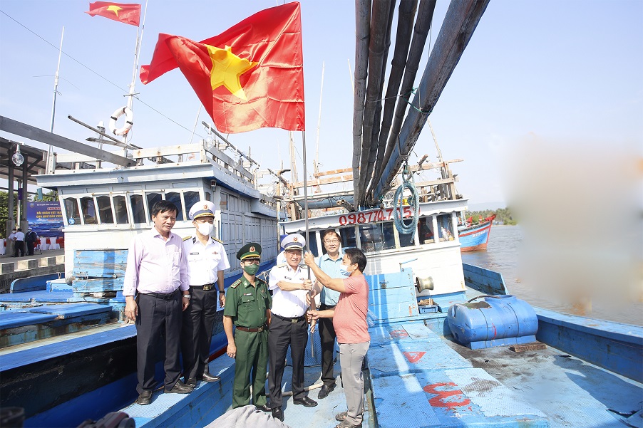 Đồng chí Tư lệnh Vùng 4 trao cờ Tổ quốc cho ngư dân