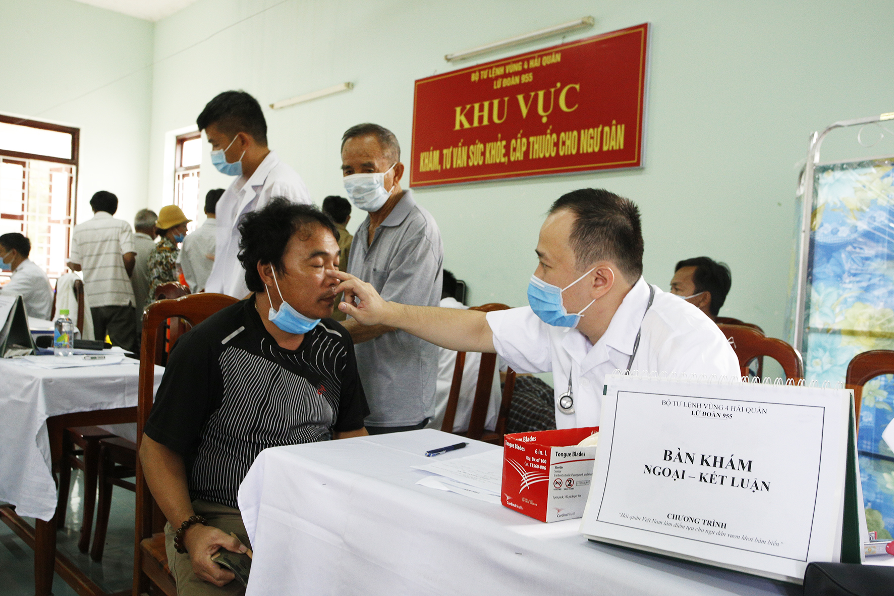 Quân y của Vùng 4 khám bệnh và cấp thuốc cho ngư dân địa phương