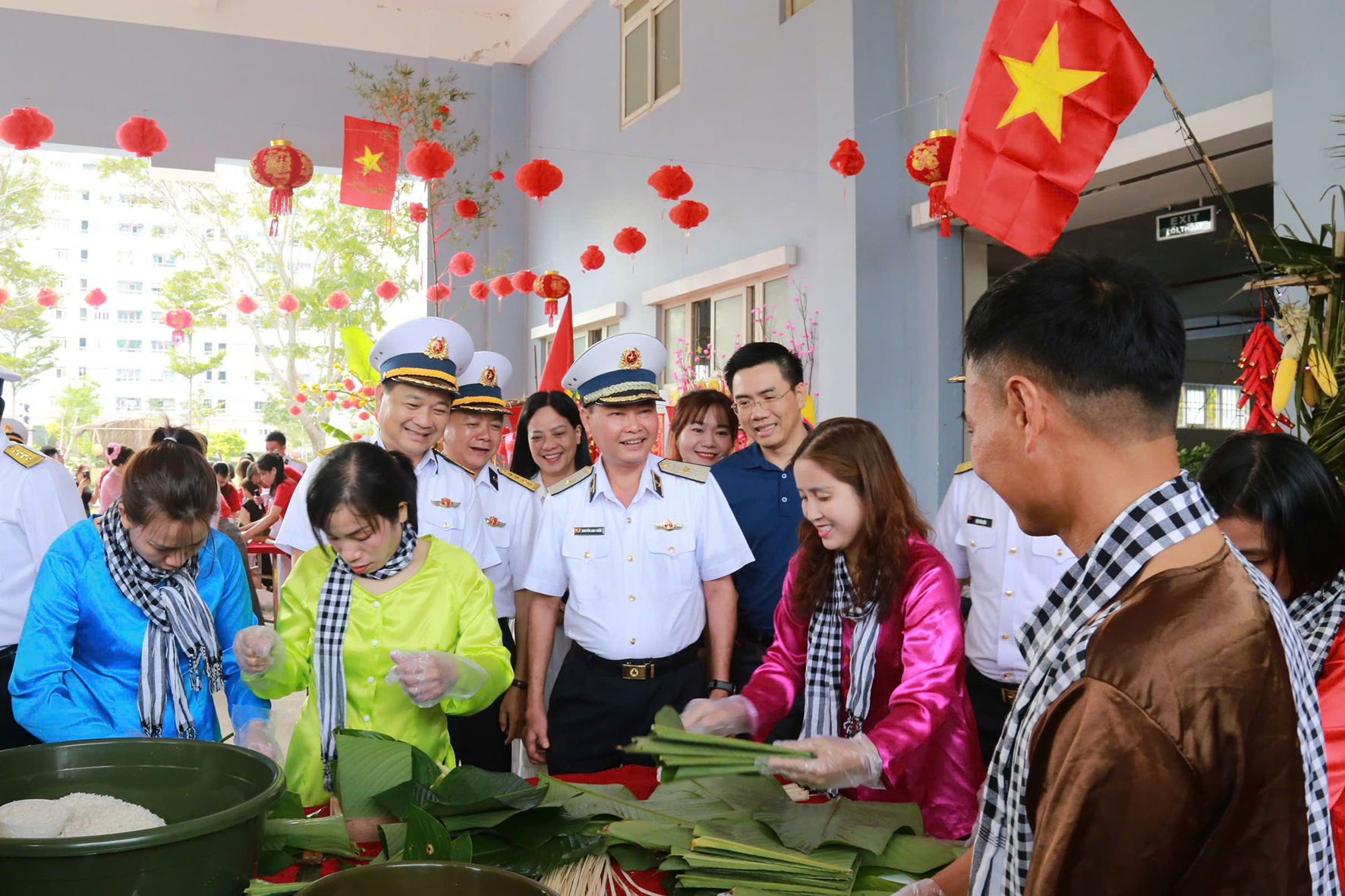 Sáng 25/1, tại Khu đô thị Căn cứ Quân sự Cam Ranh (TP.Cam Ranh, tỉnh Khánh Hòa) đã diễn ra Hội thi gói bánh chưng xanh và trưng bày gian hàng tết xưa.
