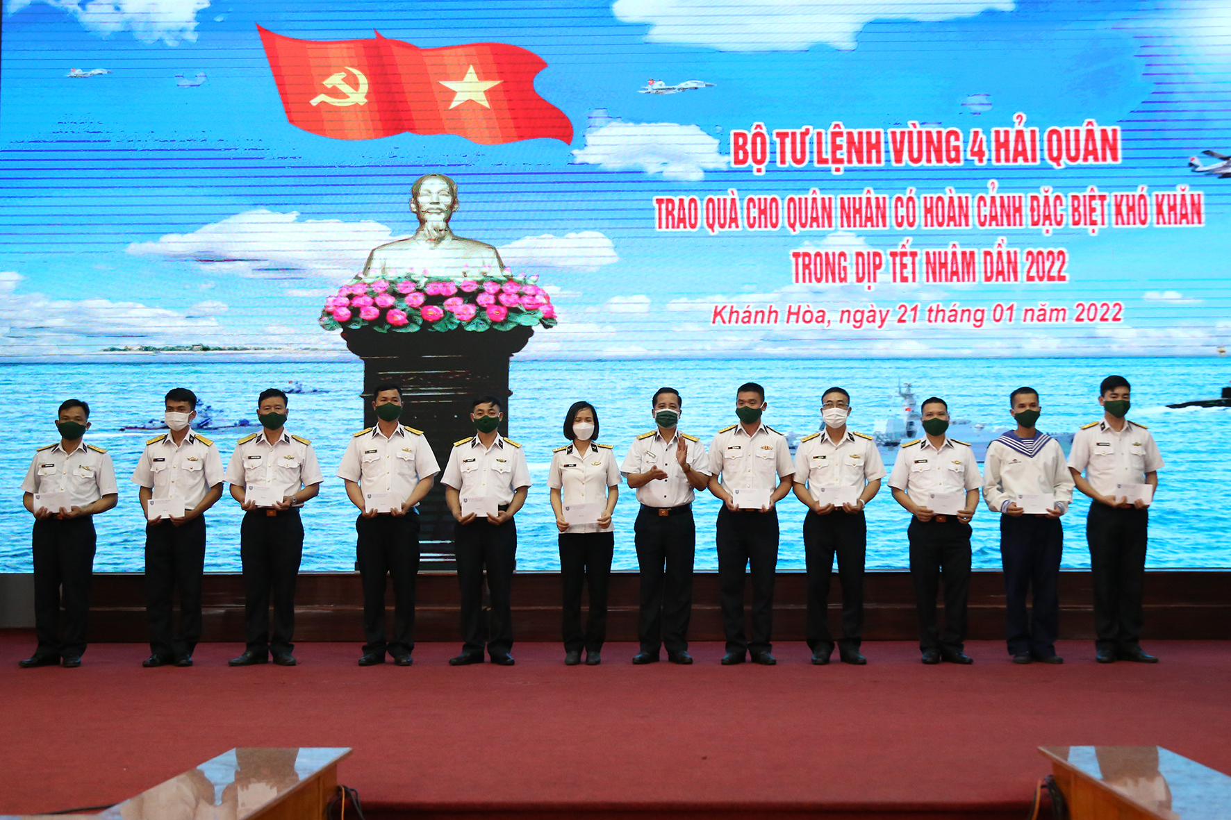 Dịp này, Vùng 4 đã trao 97 suất quà của Bộ Quốc phòng, Quân chủng Hải quân và Vùng 4 đến các gia đình quân nhân có hoàn cảnh đặc biệt khó khăn đang công tác tại Vùng. Tổng số tiền được trao 87 triệu đồng.