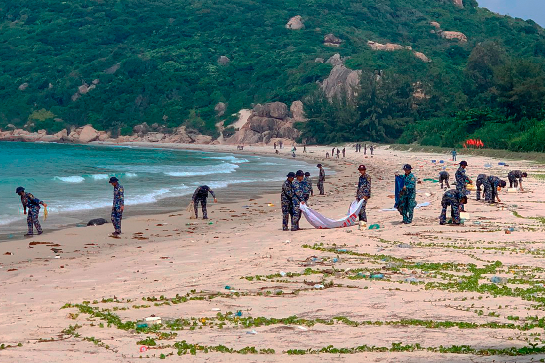 Tuổi trẻ các đơn vị thuộc Vùng 4 lao động làm sạch bờ biển
