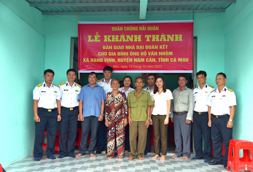Chiều 15/10, Bộ Tư lệnh Vùng 5 Hải quân phối hợp với cấp ủy, chính quyền địa phương tổ chức Lễ khánh thành và bàn giao nhà đại đoàn kết cho gia đình ông Hồ Văn Nhóm ở xã Hàng Vịnh, huyện Năm Căn, tỉnh Cà Mau. Đại tá Võ Hùng Lâm, Chủ nhiệm Chính trị Vùng chủ trì buổi lễ.