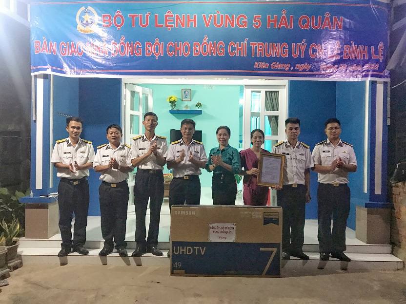 Tối 27/9, tại đảo Thổ Chu, TP. Phú Quốc, tỉnh Kiên Giang, Vùng 5 Hải quân quân phối hợp với cấp ủy, chính quyền địa phương tổ chức bàn giao nhà đồng đội cho gia đình Trung uý QNCN Lê Đình Lệ, Nhân viên Báo vụ, Trạm ra đa 610, Tiểu đoàn 551, Vùng 5. Đại tá Lê Văn Hưởng, Chủ nhiệm Chính trị Vùng chủ trì.