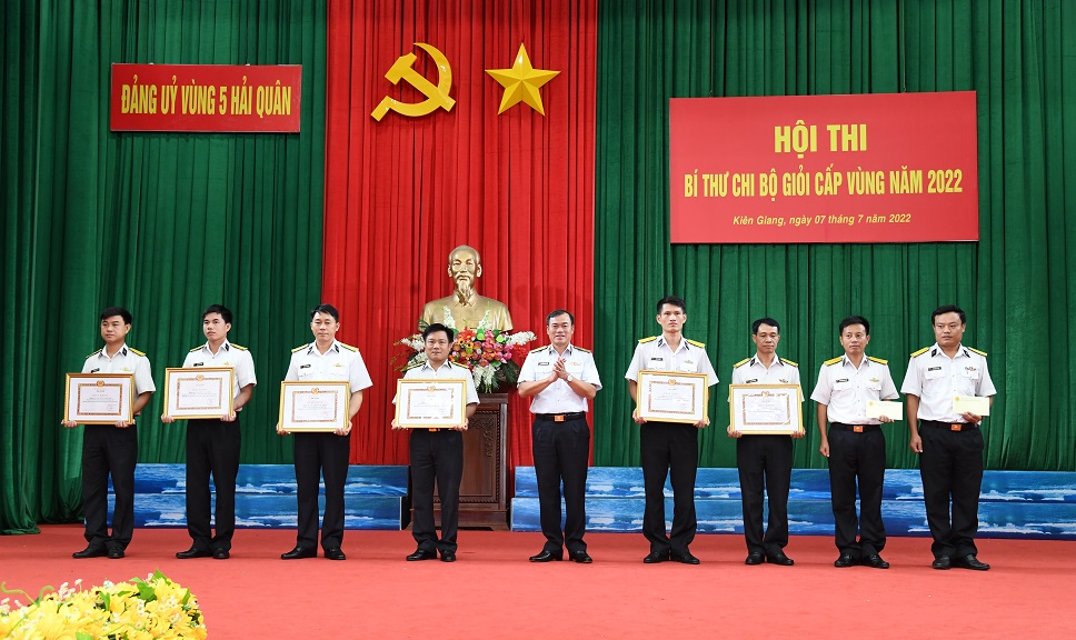 Sáng 7/7, tại TP. Phú Quốc, tỉnh Kiên Giang, Đảng ủy Vùng 5 Hải quân tổ chức bế mạc Hội thi bí thư chi bộ giỏi năm 2022. Chuẩn Đô đốc Nguyễn Đăng Tiến, Bí thư Đảng ủy, Chính ủy Vùng chủ trì.