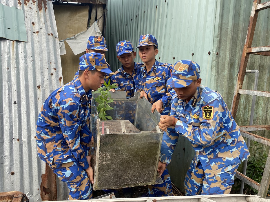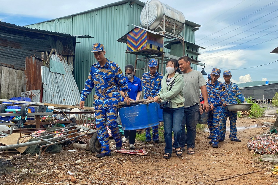 Cán bộ, chiến sĩ Vùng 5 Hải quân xử lý bể chứa nước bẩn
