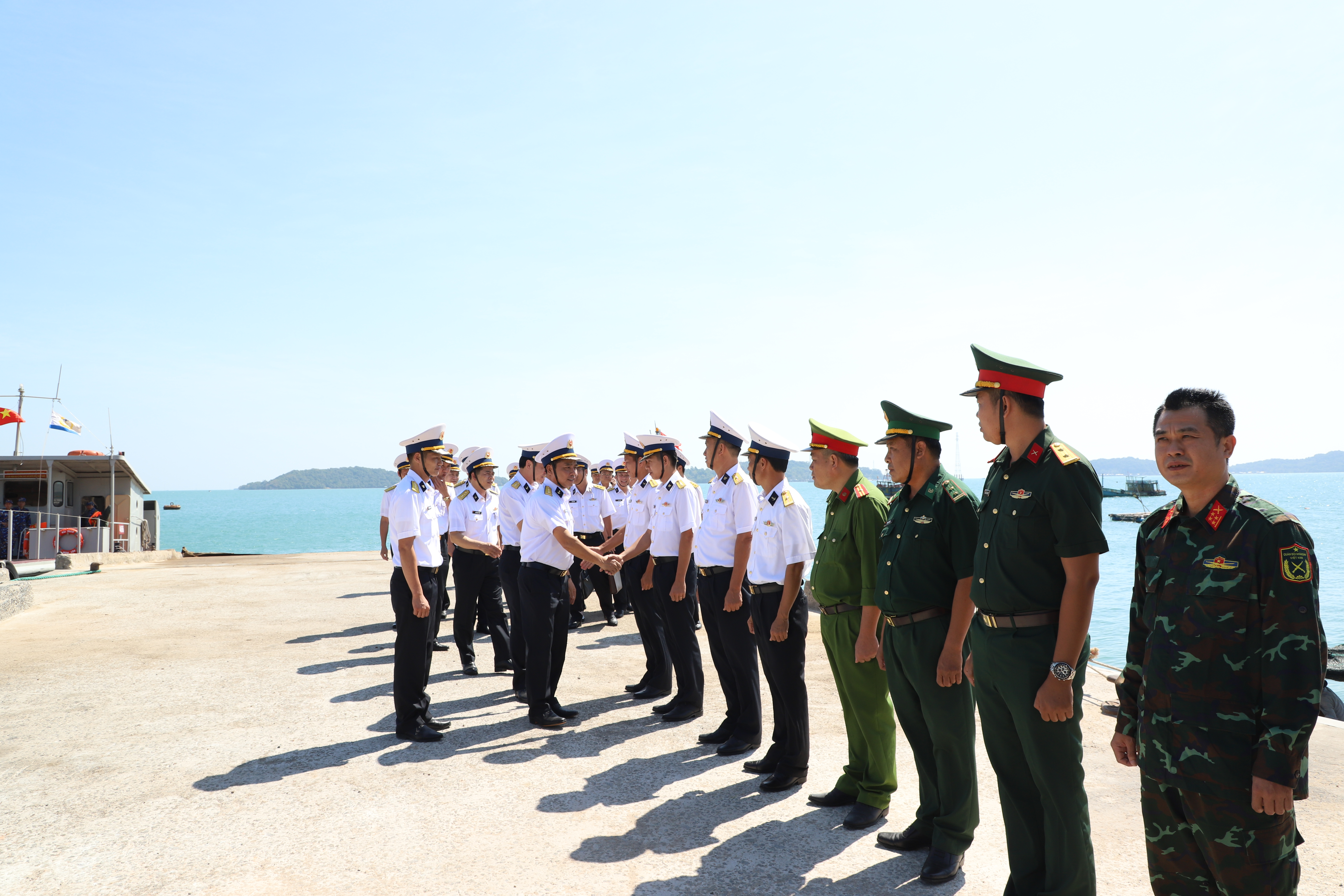 Cán bộ, chiến sĩ và lực lượng trên đảo Hòn Đốc đón đoàn công tác