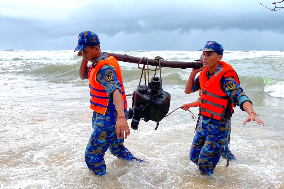 Nhận được thông tin, Vùng 5 đã điều động gần 50 cán bộ, chiến sĩ nhanh chóng đến hiện trường phối hợp với các lực lượng tại chỗ tổ chức di chuyển tài sản của người dân ra khỏi vùng sạt lở đồng thời chằng chống nhà cửa, vận chuyển hàng chục khối đá hộc kè bờ biển.