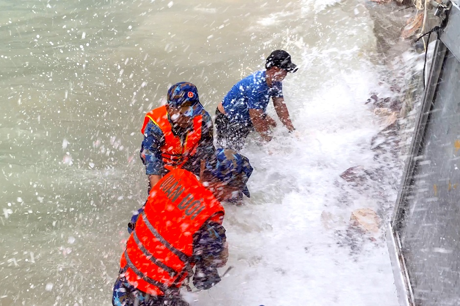 Với tinh thần khẩn trương, tích cực, cán bộ, chiến sĩ Vùng 5 và các lực lượng đã dầm mình trong mưa rét, sóng lớn nhiều giờ liên tục để kè các khu vực bờ biển bị sụt lún, sạt lở, không để xâm lấn vào sâu trong khu dân cư.