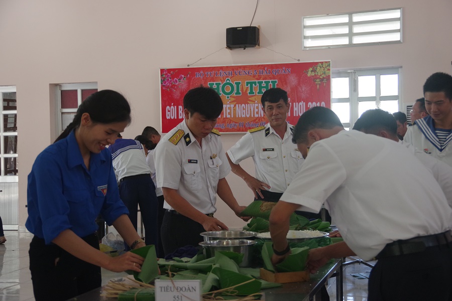 Hội thi gói bánh chưng là một nội dung trong chuỗi các hoạt động vui Xuân đón Tết của cán bộ, chiến sĩ Vùng 5 Hải quân trong dịp Tết Nguyên đán Kỷ Hợi 2019.