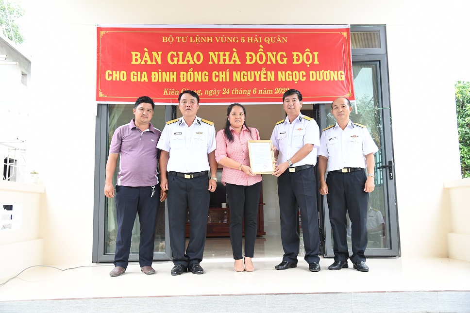 Chiều 24/6, tại xã Dương Tơ, TP. Phú Quốc, tỉnh Kiên Giang, Vùng 5 Hải quân tổ chức bàn giao nhà đồng đội cho Thiếu tá QNCN Nguyễn Ngọc Dương, Nhân viên ra đa, Tiểu đoàn 551. Đại tá Nguyễn Quốc Doanh, Phó Tư lệnh Vùng tới dự.