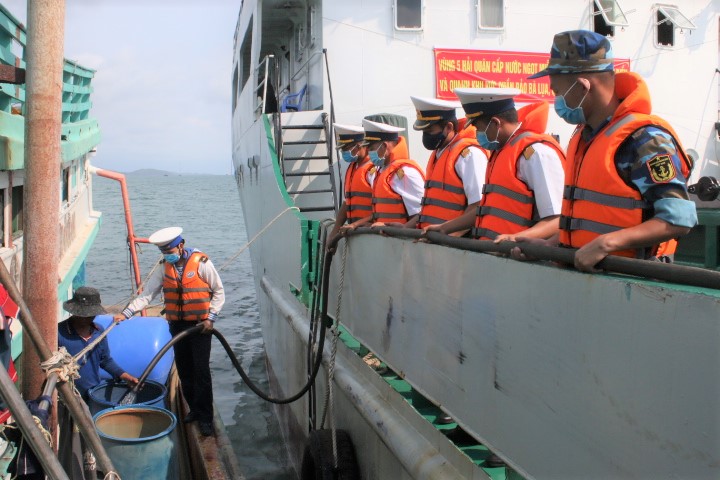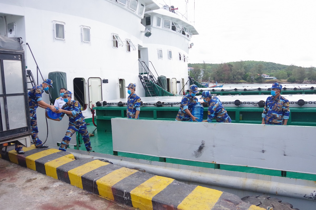 Cán bộ, chiến sĩ Tàu 637 đã cấp 220 nghìn lít nước ngọt cho người dân vùng hạn ở ấp Hòn Heo, Hòn Nhum, Hòn Nghệ, Hòn Ngang và các tàu thuyền của ngư dân đang đánh bắt hải sản quanh khu vực đảo Bà Lụa, đảo Hải Tặc, tỉnh Kiên Giang.