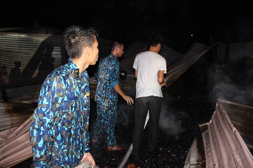 Trước đó, lúc 18 giờ 30, ngày 18-5, trại cá cơm rộng hơn 200m2 của người dân ở tổ 1, khu phố 7, thị trấn An Thới, Phú Quốc, Kiên Giang bất ngờ bốc cháy dữ dội. Nhận được tin báo, Vùng 5 Hải quân đã điều 2 xe cứu hỏa cùng 11 cán bộ, chiến sĩ nhanh chóng đến hiện trường.