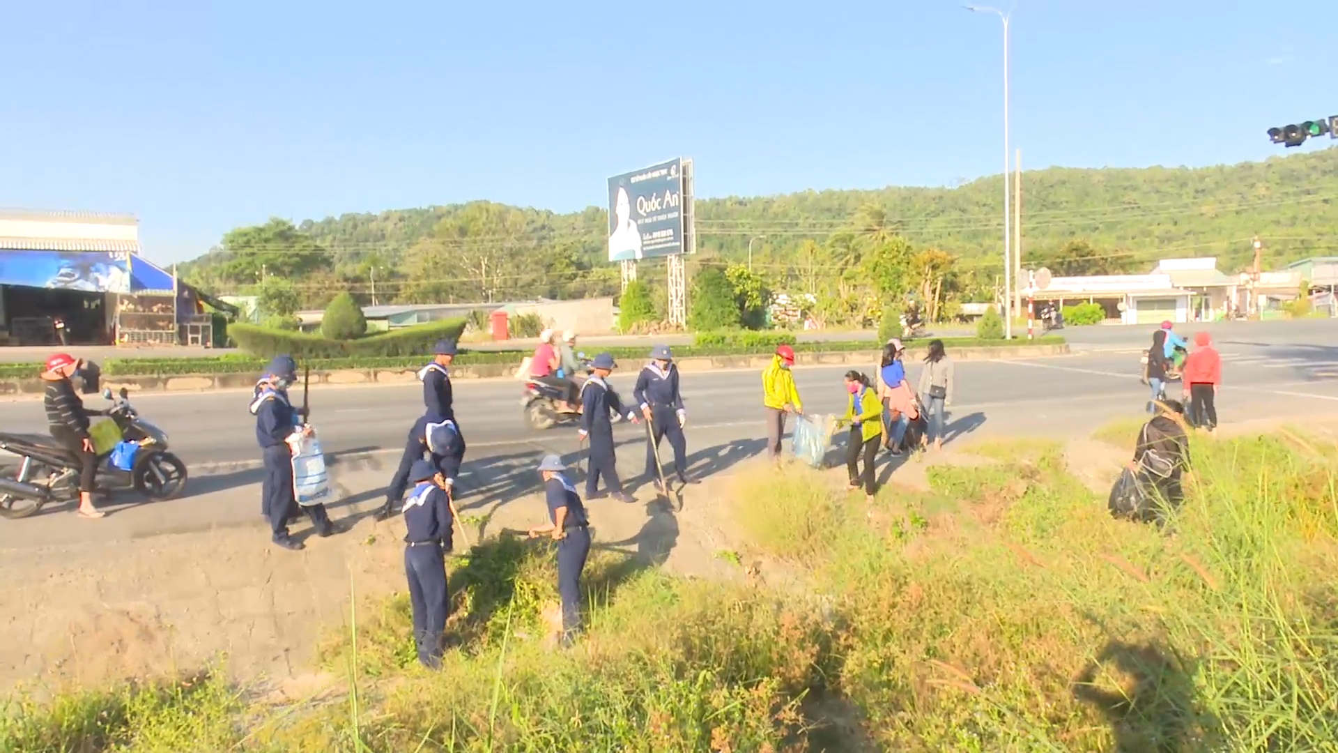 Cán bộ, chiến sĩ Tiểu đoàn 563 và nhân dân vệ sinh đường giao thông