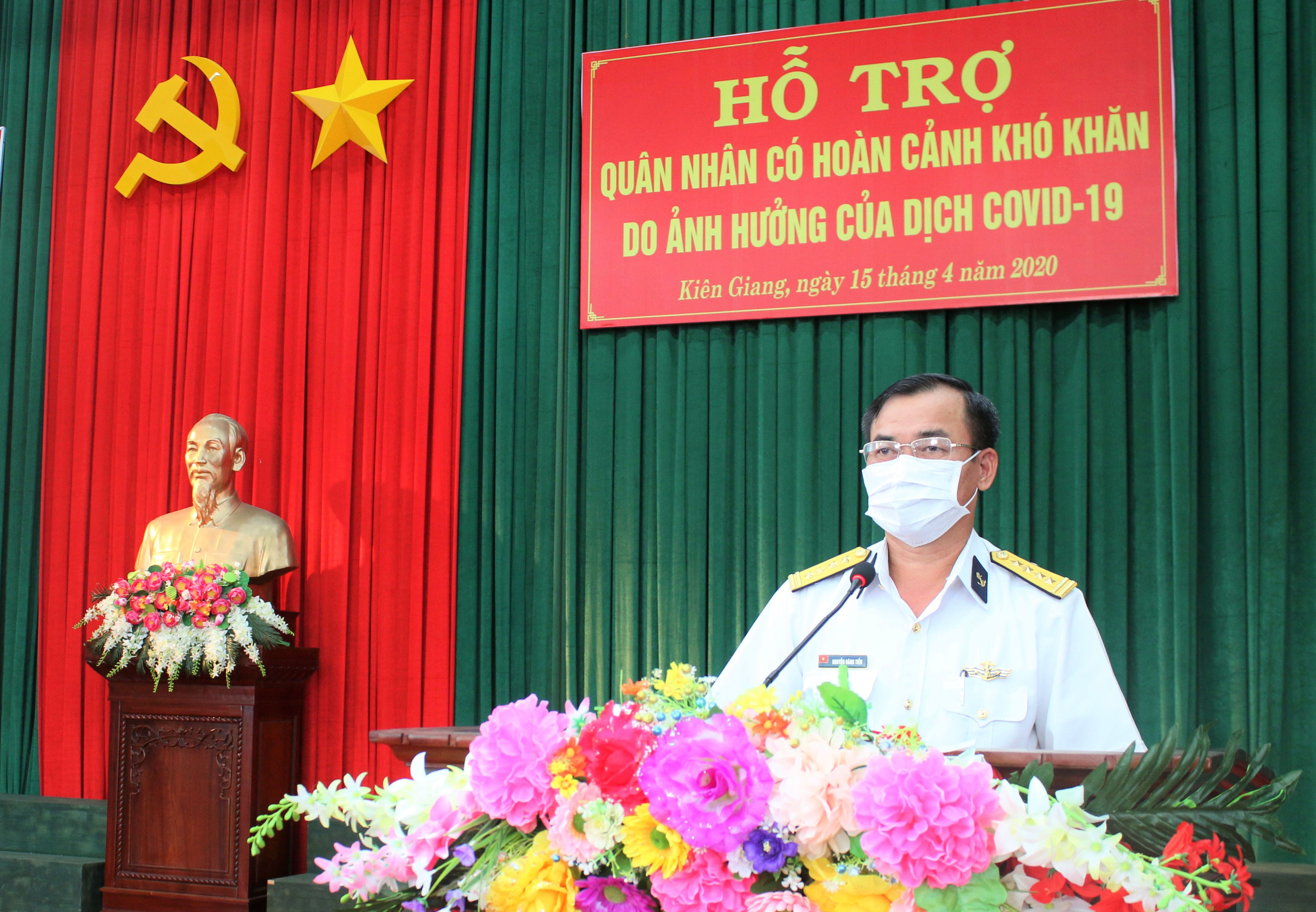 Sáng 15-4, tại huyện đảo Phú Quốc, tỉnh Kiên Giang, Vùng 5 Hải quân tổ chức tặng quà hỗ trợ gia đình quân nhân có hoàn cảnh khó khăn do ảnh hưởng của dịch Covid-19.