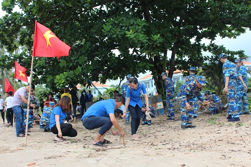 Ngay sau lễ phát động, cán bộ, đoàn viên, thanh niên các đơn vị đã tổ chức vệ sinh doanh trại; dọn rác, nhặt túi ni lông, chai nhựa... dọc bờ biển dài hơn 2,5 km, thu gom được trên 4 tấn rác thải.