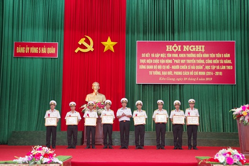 Tại hội nghị, Vùng 5 đã tặng Giấy khen cho 8 tập thể và 10 cá nhân có thành tích xuất sắc trong 5 năm thực hiện CVĐ “Phát huy truyền thống, cống hiến tài năng, xứng danh Bộ đội Cụ Hồ-Người chiến sĩ Hải quân”.