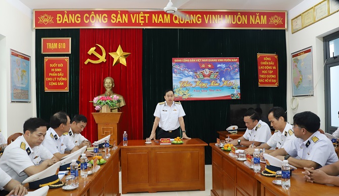 Trước đó, Tư lệnh Hải quân cùng đoàn công tác đã đến thăm, kiểm tra và chúc Tết cán bộ, chiến sĩ Trạm ra đa 610, Trung đoàn 551 đóng quân trên đảo Thổ Chu, xã Thổ Châu, TP. Phú Quốc.
