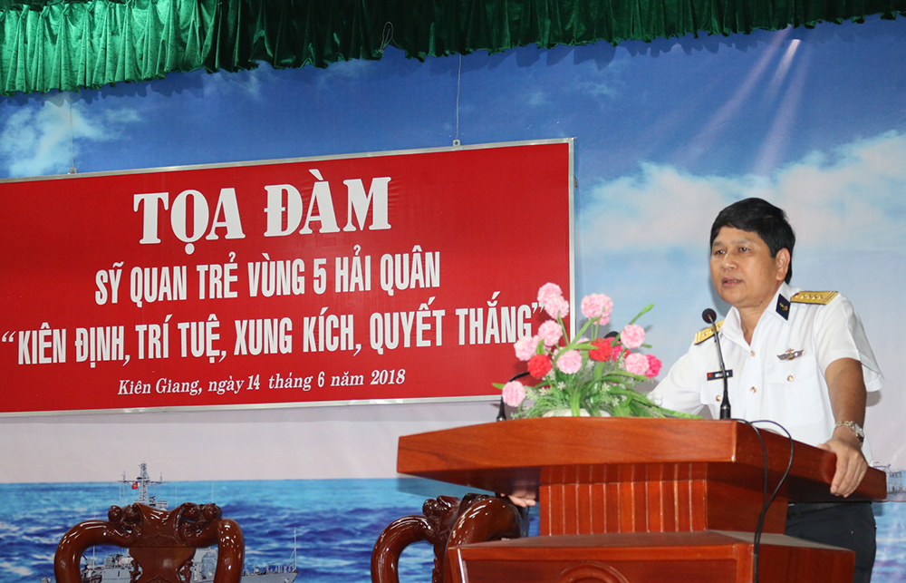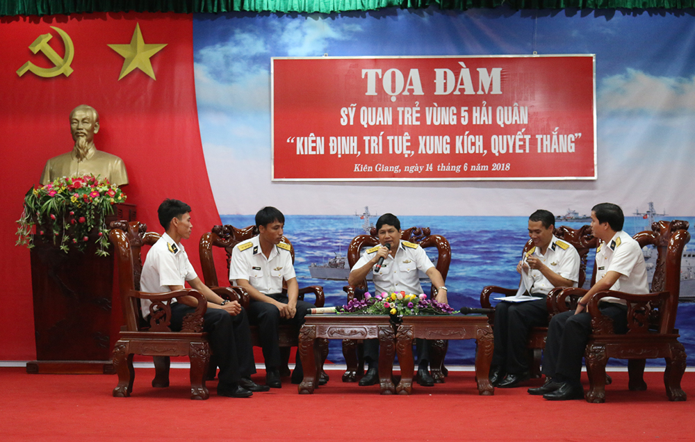 Chiều 15-6, tại Phú Quốc, Kiên Giang, Vùng 5 Hải quân tổ chức tọa đàm cán bộ, sĩ quan trẻ năm 2018. Đến dự buổi tọa đàm có Đại tá Ngô Văn Thuân, Bí thư Đảng ủy, Chính ủy Vùng cùng lãnh đạo, chỉ huy các cơ quan, đơn vị và 151 sĩ quan trẻ.