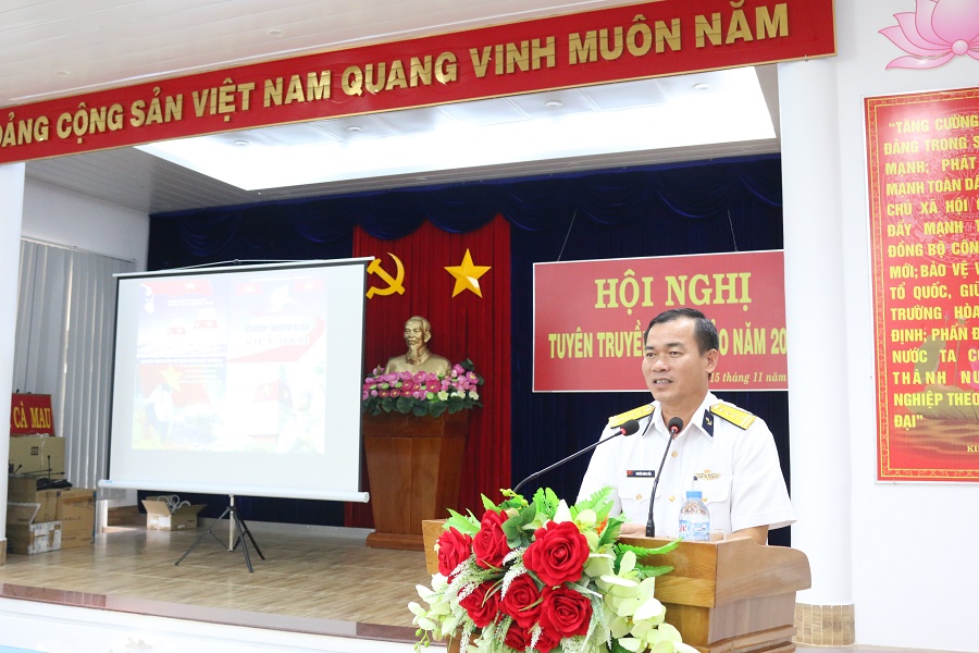 Từ 13 đến 17-11, đoàn công tác của Vùng 5 Hải quân do Đại tá Nguyễn Đăng Tiến, Phó Chính ủy Vùng làm trưởng đoàn đã tổ chức 6 buổi tuyên truyền biển, đảo cho 2.800 cán bộ, giảng viên, sinh viên Trường Đại học Cần Thơ; 1.600 cán bộ chủ chốt cấp tỉnh; cán bộ các sở, ban ngành; báo cáo viên các cấp của 2 tỉnh Cà Mau và Kiên Giang.