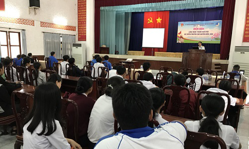 Quang cảnh buổi tuyên truyền tại Trường THPT của huyện Tháp Mười