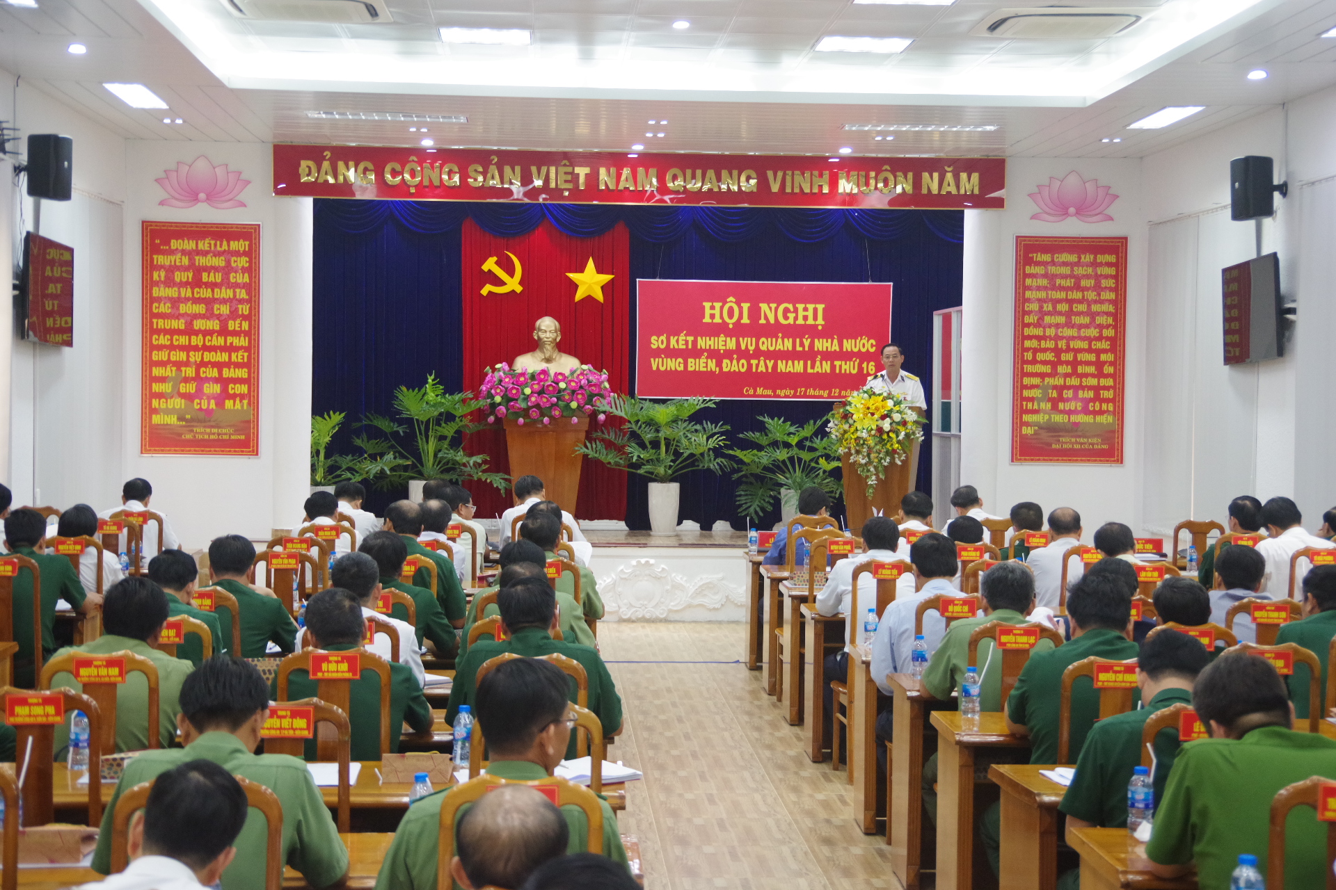 Chiều 17-12, Bộ Tư lệnh Vùng 5 Hải quân phối hợp với Ủy ban nhân dân tỉnh Cà Mau tổ chức Hội nghị sơ kết thực hiện nhiệm vụ quản lý Nhà nước vùng biển, đảo Tây Nam lần thứ 16.