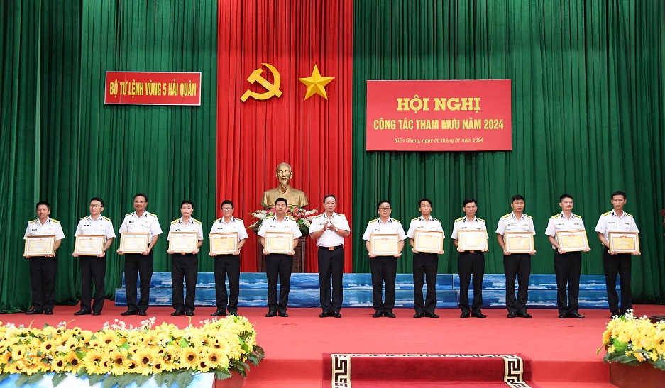 Tại hội nghị, thừa ủy quyền của thủ trưởng Bộ Tư lệnh Hải quân, Vùng 5 đã trao Bằng khen cho 2 tập thể và 2 cá nhân có thành tích xuất sắc trong thực hiện Nghị quyết số 806-NQ/TW, ngày 31/12/2013 của Quân ủy Trung ương về hội nhập quốc tế và đối ngoại quốc phòng giai đoạn 2013-2023.