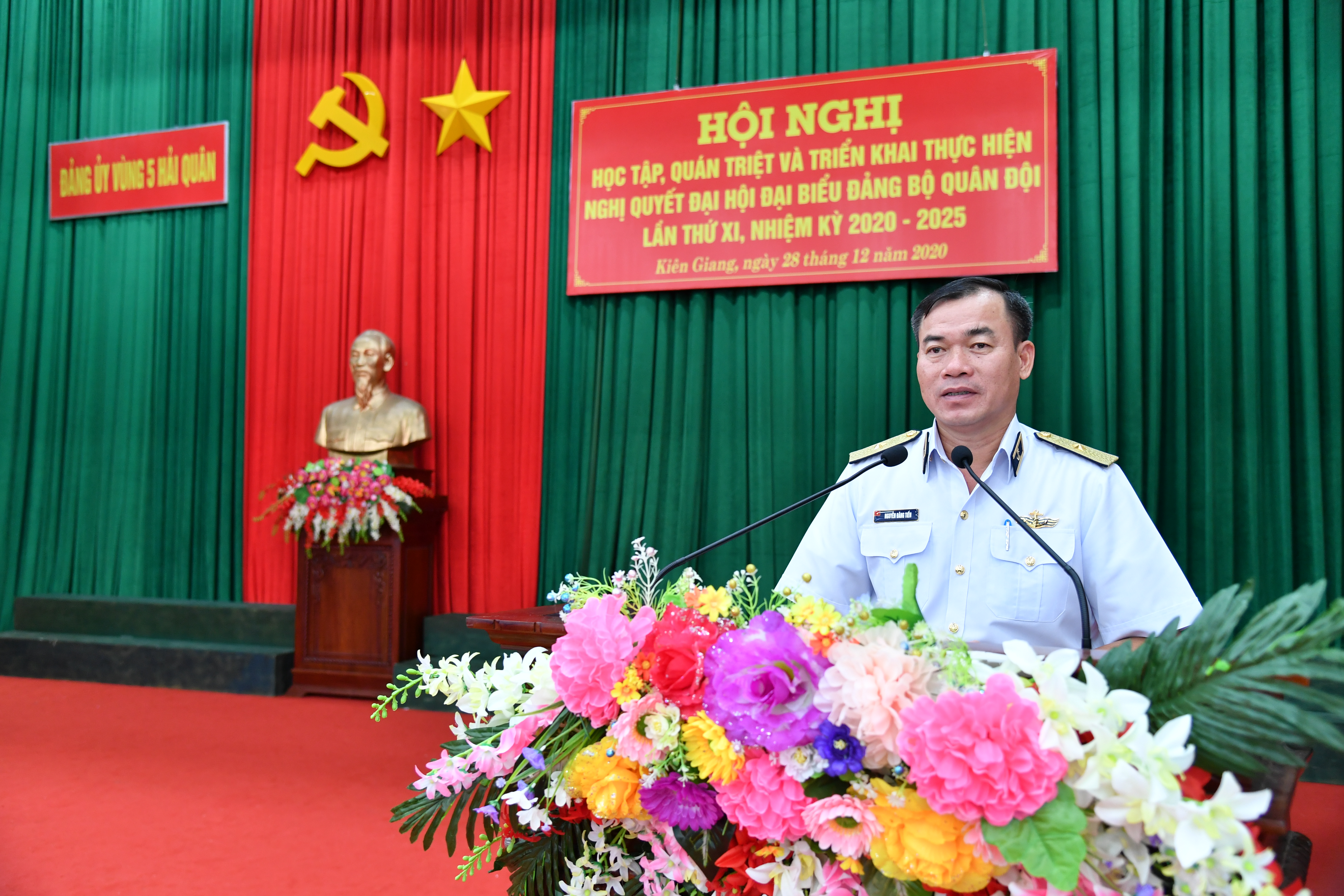 Sáng 28-12, tại huyện đảo Phú Quốc, tỉnh Kiên Giang, Đảng ủy Vùng 5 Hải quân tổ chức Hội nghị học tập, quán triệt và triển khai thực hiện Nghị quyết Đại hội Đảng bộ Quân đội lần thứ XI, nhiệm kỳ 2020-2025. Chuẩn Đô đốc Nguyễn Đăng Tiến, Bí thư Đảng ủy, Chính ủy Vùng trực tiếp quán triệt Nghị quyết.