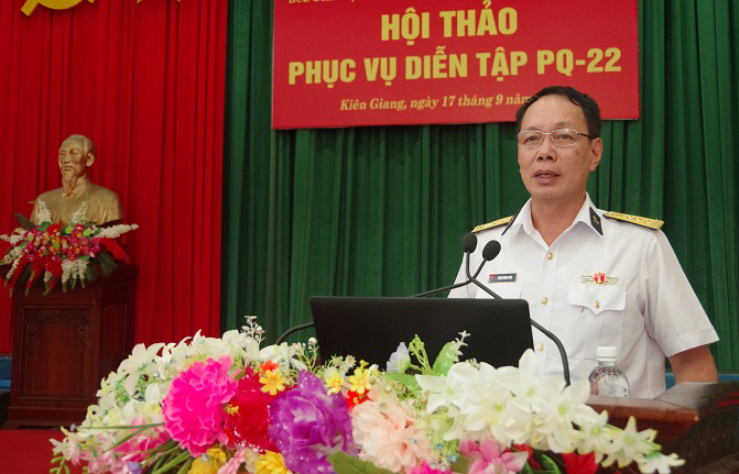 Sáng 17/9, tại TP. Phú Quốc, tỉnh Kiên Giang, Vùng 5 Hải quân tổ chức Hội thảo phục vụ nhiệm vụ diễn tập năm 2022. Đại tá Phạm Quang Vinh, Phó Tư lệnh, Tham mưu trưởng Vùng chủ trì.
