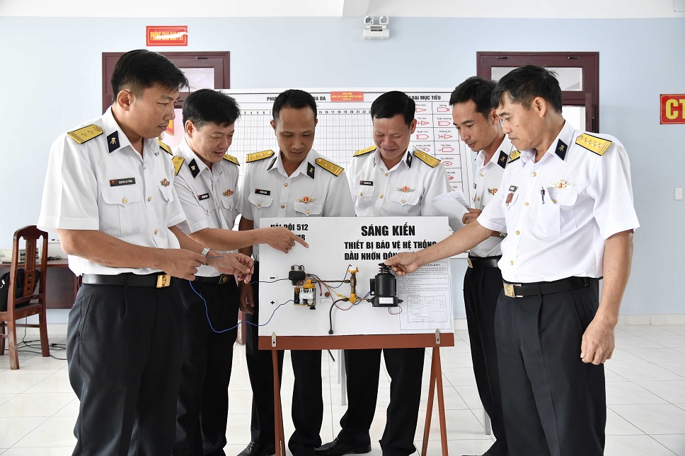 Tiêu biểu có các sáng kiến: Bộ chuyển đổi dữ liệu hệ thống dẫn đường quán tính; kính ngắm quang học; thiết bị bảo vệ động cơ diesel bằng áp lực dầu nhờn; hệ thống chống ăn mòn đường ống sinh hàn điều hòa; tủ điện bảo vệ bơm nước ngọt sinh hoạt trên tàu; ứng dụng khoa học thiết kế, lắp ráp, điều khiển máy cắt laser…