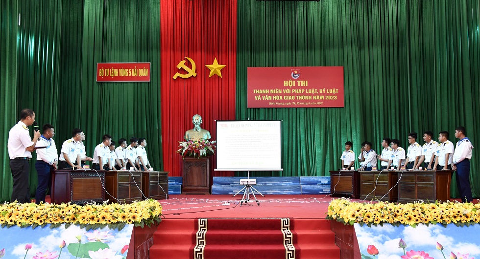 Ngày 24 và 25/8, tại TP. Phú Quốc, tỉnh Kiên Giang, Vùng 5 Hải quân tổ chức Hội thi “Thanh niên với pháp luật, kỷ luật và văn hóa giao thông” năm 2023. Đại tá Lê Văn Hưởng, Phó Chính ủy Vùng dự và chỉ đạo.