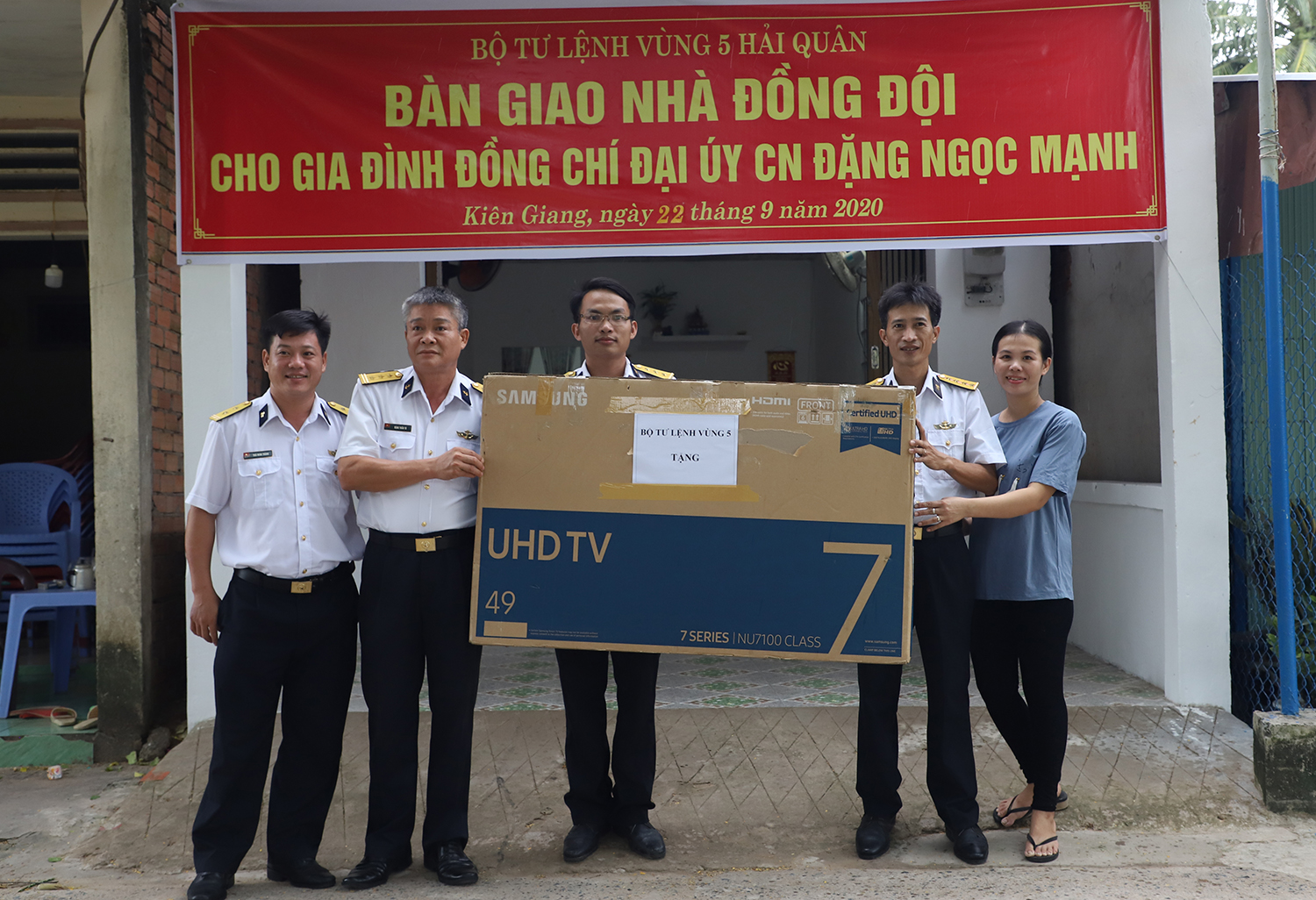 Chiều 22-9, tại xã đảo Thổ Châu, huyện Phú Quốc, tỉnh Kiên Giang, Vùng 5 Hải quân phối hợp với chính quyền địa phương tổ chức khánh thành và bàn giao nhà đồng đội cho Đại úy QNCN Đặng Ngọc Mạnh, Nhân viên Trạm ra đa 610 thuộc Tiểu đoàn ra đa 551, Vùng 5 Hải quân.