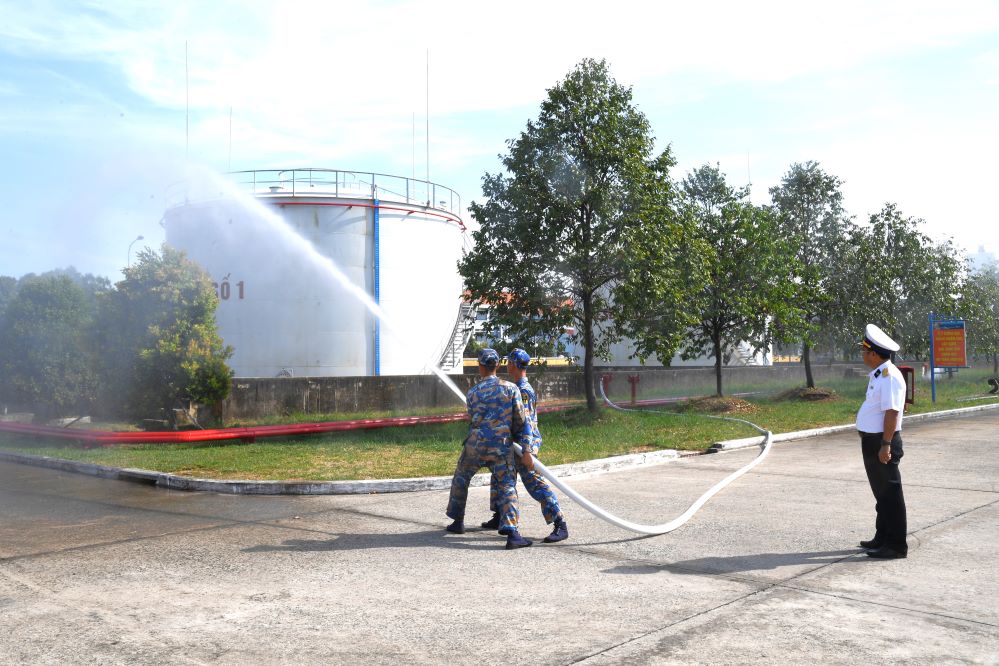 Kiểm tra phương án, kỹ năng chữa cháy tại Kho xăng dầu, Phòng Hậu cần-Kỹ thuật của Vùng