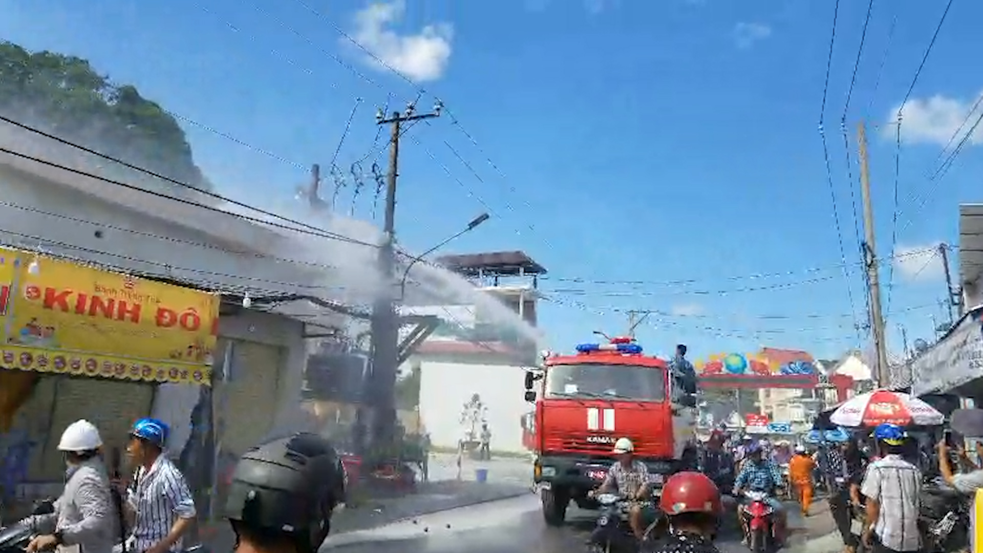 Trước đó, khoảng 14 giờ 30 phút cùng ngày, trạm biến áp nói trên bất ngờ nổ và bốc cháy khiến một số hộ dân kinh doanh gần đó hoảng loạn bỏ chạy.