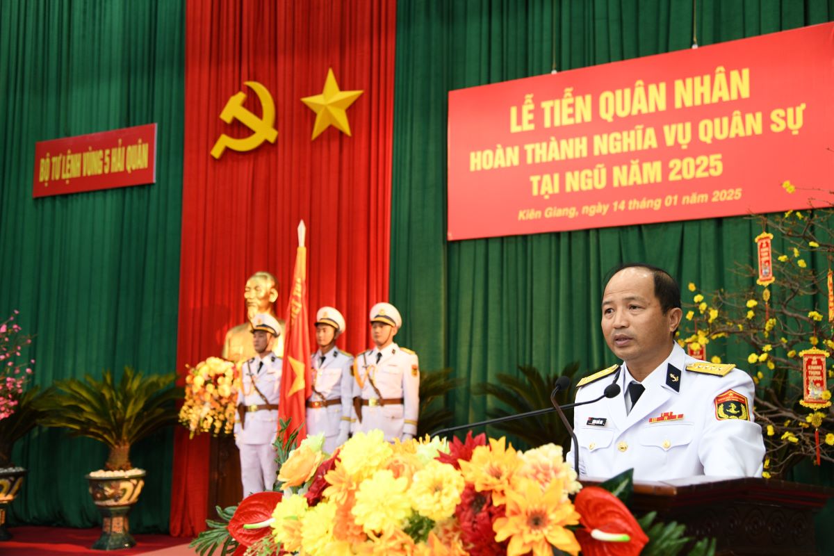 Phát biểu tại buổi lễ, Đại tá Lương Quốc Anh ghi nhận, biểu dương sự nỗ lực, cố gắng và thành tích đạt được của hạ sĩ quan, chiến sĩ trong quá trình công tác đồng thời mong muốn các quân nhân sau khi trở về địa phương tiếp tục giữ vững và phát huy phẩm chất “Bộ đội Cụ Hồ - Người chiến sĩ Hải quân”; gương mẫu đi đầu trong chấp hành pháp luật Nhà nước, quy định của địa phương; nêu cao ý thức tự lực, tự cường, say mê, sáng tạo trong công việc gắn với tích cực học tập, công tác, lao động sản xuất, góp phần xây dựng quê hương ngày càng giàu mạnh.