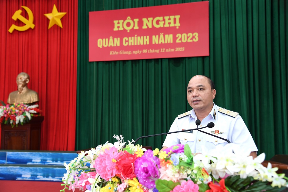 Chuẩn Đô đốc Nguyễn Duy Tỷ, Tư lệnh Vùng chủ trì hội nghị. Chuẩn Đô đốc Nguyễn Hữu Thoan, Bí thư Đảng ủy, Chính ủy Vùng quán triệt nghị quyết lãnh đạo thực hiện nhiệm vụ năm 2024 của Đảng ủy Vùng.