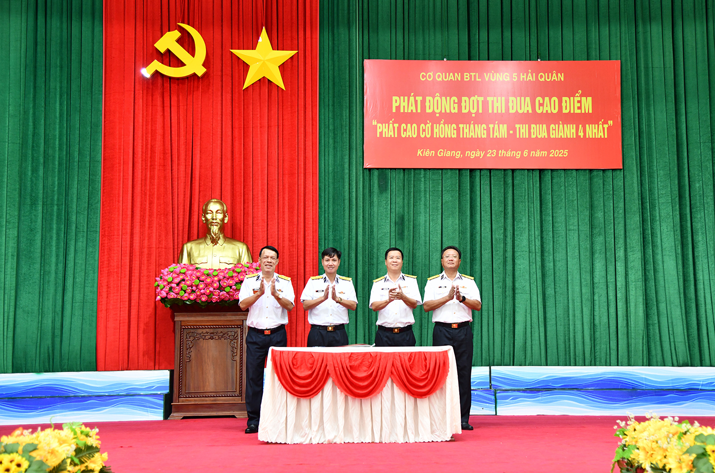 Ngày 23/6, các cơ quan, đơn vị thuộc Bộ Tư lệnh Vùng 5 Hải quân từ đất liền đến hải đảo, đồng loạt tổ chức lễ phát động đợt thi đua cao điểm với chủ đề “Phất cao cờ hồng tháng Tám – Thi đua giành 4 nhất”.