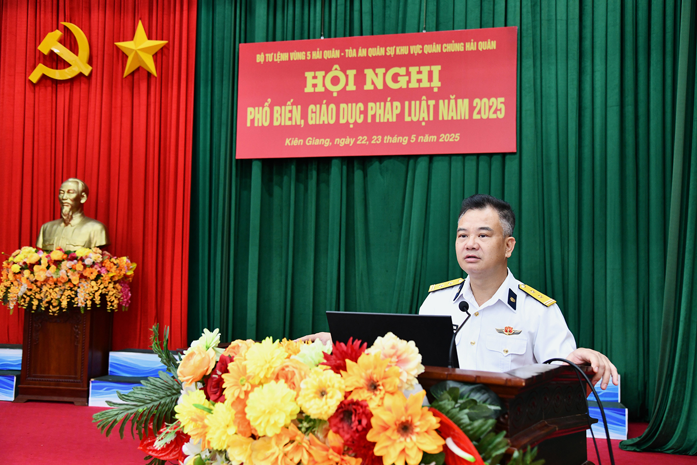 Ngày 22 và 23/5, tại TP. Phú Quốc, tỉnh Kiên Giang, Bộ Tư lệnh Vùng 5 Hải quân phối hợp với Tòa án Quân sự khu vực Quân chủng Hải quân tổ chức Hội nghị phổ biến, giáo dục pháp luật năm 2025 cho cán bộ, chiến sĩ các cơ quan, đơn vị trong Vùng.