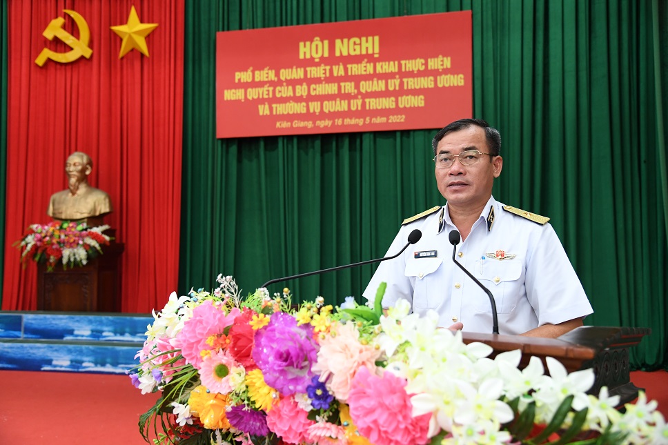 Sáng 16/5, tại TP. Phú Quốc, tỉnh Kiên Giang, Đảng ủy, Bộ Tư lệnh Vùng 5 Hải quân tổ chức Hội nghị phổ biến, quán triệt, triển khai thực hiện nghị quyết của Bộ Chính trị, Quân ủy Trung ương và Thường vụ Quân ủy Trung ương cho cán bộ chủ chốt các cơ quan, đơn vị trong Vùng. Chuẩn Đô đốc Nguyễn Đăng Tiến, Bí thư Đảng ủy, Chính ủy Vùng chủ trì.