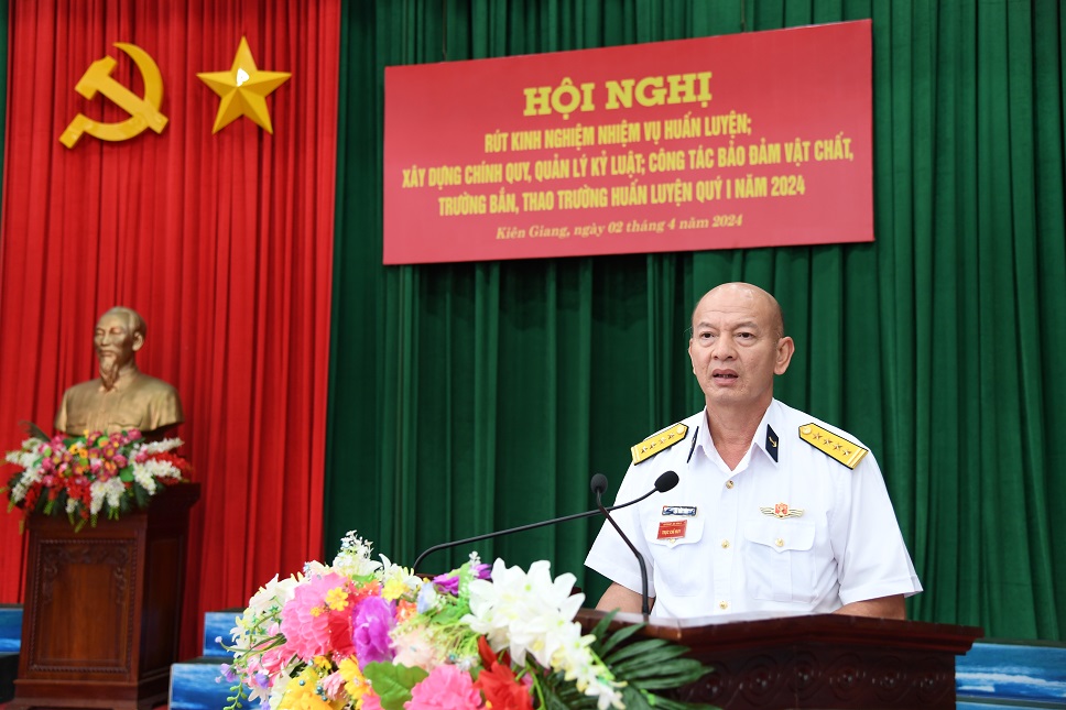 Chiều 2/4, tại TP. Phú Quốc, tỉnh Kiên Giang, Bộ Tư lệnh Vùng 5 Hải quân tổ chức Hội nghị rút kinh nghiệm nhiệm vụ huấn luyện; xây dựng chính quy, quản lý kỷ luật; công tác bảo đảm vật chất, trường bắn, thao trường huấn luyện Quý I năm 2024. Đại tá Lục Đức Tiên, Phó Tư lệnh Vùng dự và chỉ đạo.