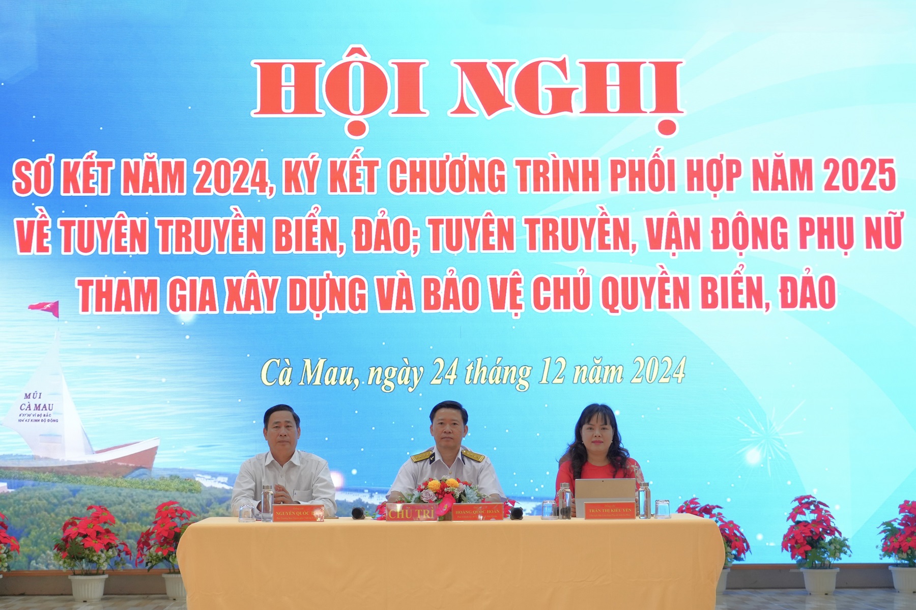 Đồng chủ trì hội nghị có: Đại tá Hoàng Quốc Hoàn, Phó Chính ủy Bộ Tư lệnh Vùng 5; đồng chí Trần Thị Kiều Yến, Chủ tịch Hội Liên hiệp phụ nữ tỉnh Cà Mau; đồng chí Nguyễn Quốc Tiến, Phó Trưởng Ban Tuyên giáo Tỉnh ủy Cà Mau.