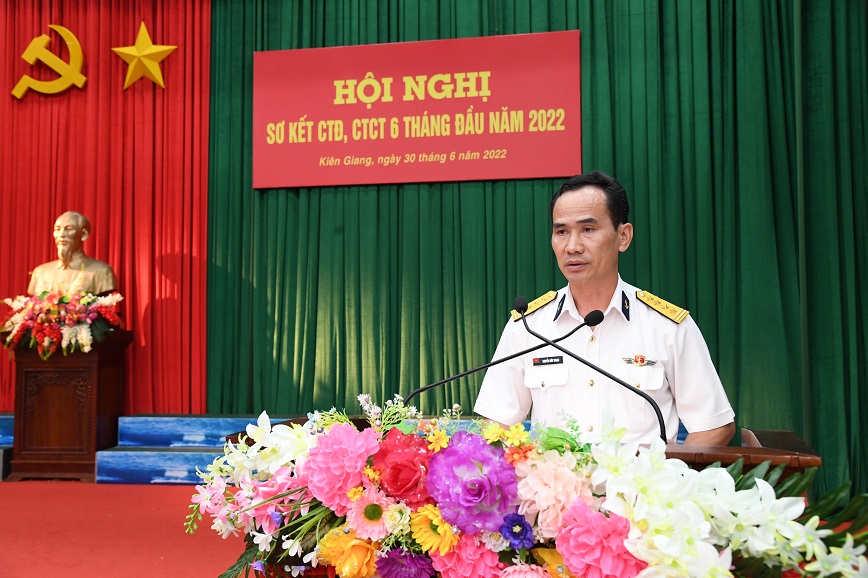 Chiều 30/6, tại TP. Phú Quốc, tỉnh Kiên Giang, Vùng 5 Hải quân tổ chức Hội nghị sơ kết CTĐ, CTCT 6 tháng đầu năm 2022. Đại tá Nguyễn Hữu Thoan, Phó Chính ủy Vùng chủ trì.