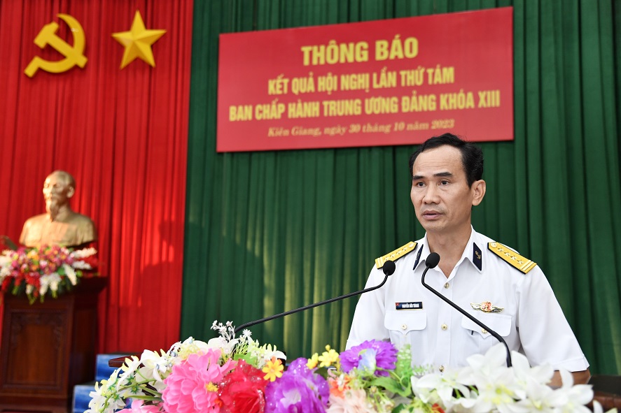 Sáng 30/10, tại TP. Phú Quốc, tỉnh Kiên Giang, Đảng ủy Vùng 5 Hải quân tổ chức thông báo kết quả Hội nghị lần thứ tám Ban Chấp hành Trung ương Đảng Khóa XIII. Đại tá Nguyễn Hữu Thoan, Bí thư Đảng ủy, Chính ủy Vùng chủ trì.