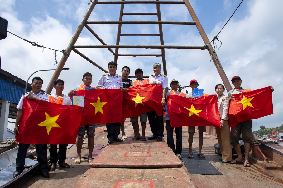 Dịp này, Vùng 5 Hải quân và Ban Tuyên giáo Tỉnh ủy Kiên Giang đã tặng 500 bộ tài liệu những điều cần biết khi đi biển; tặng 30 áo phao, 300 lá cờ Tổ quốc cho ngư dân, chức sắc tôn giáo, người có uy tín trong đồng bào dân tộc thiểu số, đồng bào dân tộc Khmer.