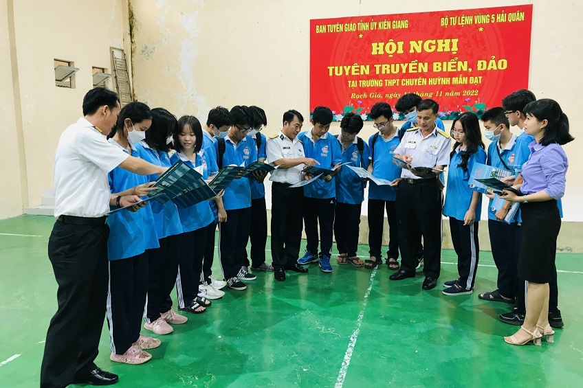 Ngày 10 và 11/11, Vùng 5 Hải quân phối hợp với Ban Tuyên giáo Tỉnh ủy Kiên Giang tổ chức tuyên truyền biển, đảo, thu hút nguồn nhân lực xây dựng Quân chủng Hải quân hiện đại tại một số trường học trên địa bàn tỉnh.
