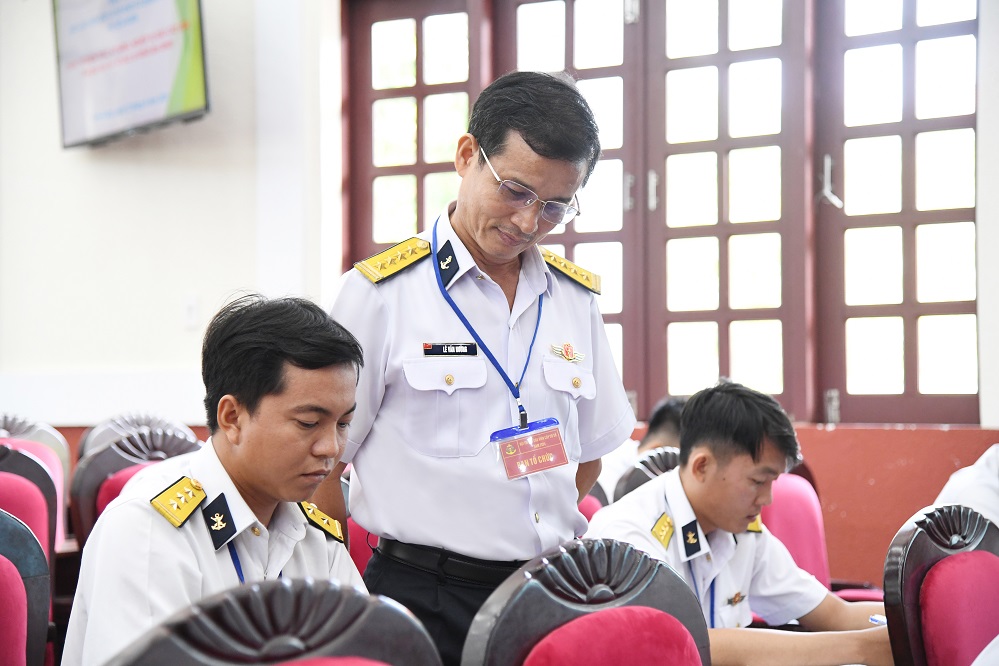 Đại tá Lê Văn Hưởng, Phó Chính ủy Vùng 5 kiểm tra thí sinh thi biên soạn đề cương