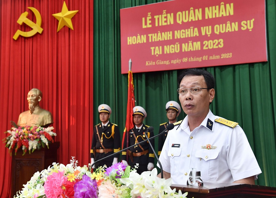 Sáng 8/1, tại TP. Phú Quốc, tỉnh Kiên Giang, Vùng 5 Hải quân quân tổ chức Lễ tiễn quân nhân hoàn thành nghĩa vụ quân sự năm 2023. Đại tá Phạm Quang Vinh, Phó Tư lệnh, Tham mưu trưởng Vùng chủ trì.