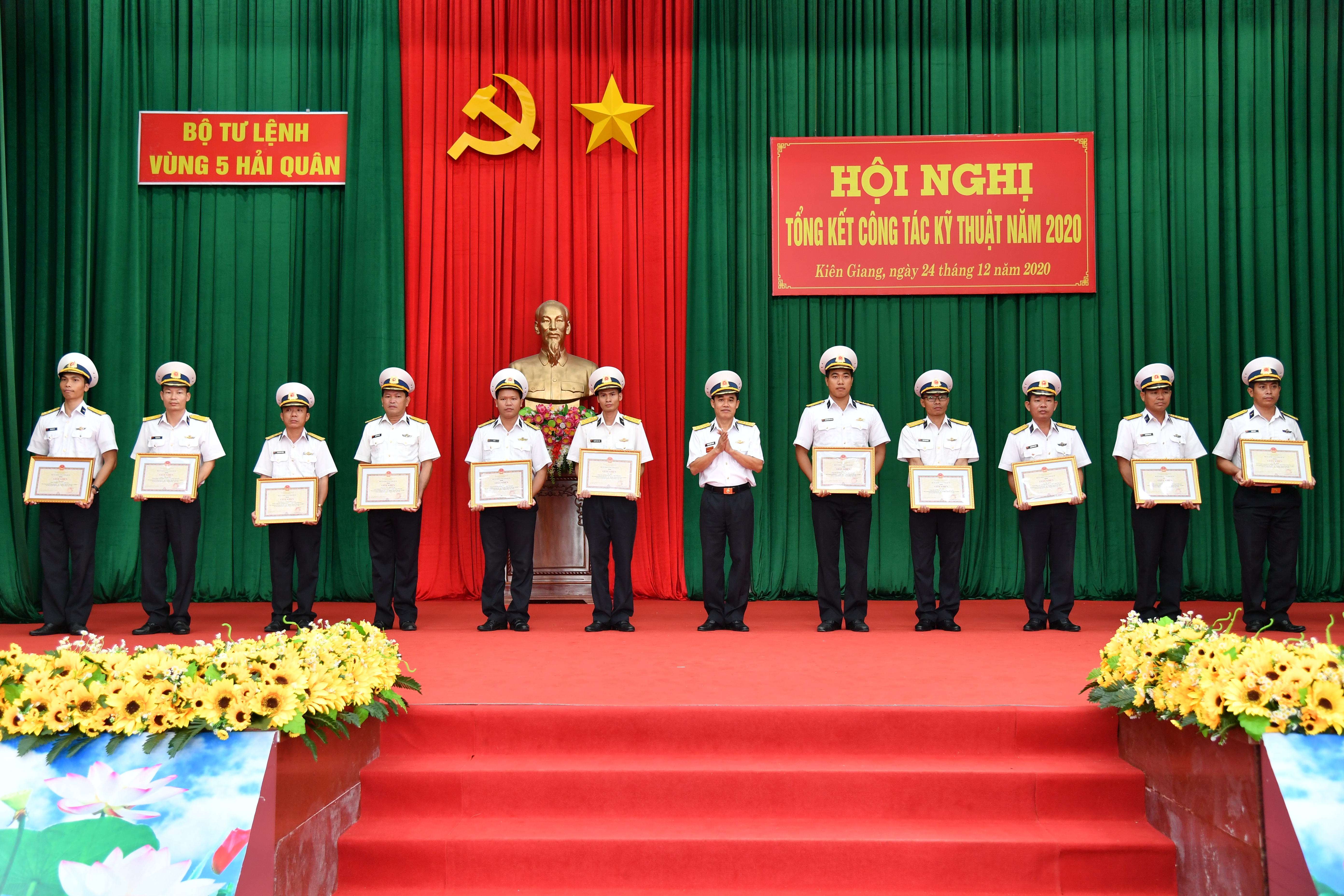 Chiều 24-12, tại huyện đảo Phú Quốc, tỉnh Kiên Giang, Vùng 5 Hải quân tổ chức Hội nghị tổng kết công tác kỹ thuật năm 2020. Tới dự có Chuẩn Đô đốc Nguyễn Đăng Tiến, Chính ủy Vùng và Đại tá Tạ Quang Nam, Phó Tư lệnh, Tham mưu trưởng Vùng.